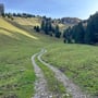 Nach einer Pause schritten wir südostseitig den steilen, grasigen Bergrücken hinunter nach Cray Dessus und von da weiter über die Wiese zum rotweissen Wanderweg, welcher nach Mont Dessus führt. Bei Pt. 1717 änderten wir die Richtung abermals mit Ziel des Chaux de Culand.