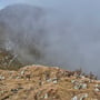 Nach einer Mittagspause wanderten wir auf dem nun fortlaufenden blauweiss-markierten Wanderweg in Richtung Osten bis zu Pt. 2182, wo der steinige Pfad in die Ostflanke des Massivs führte. Ab hier verlief der Weg etwas unterhalb des Grates und wenig später vor dem Gipfel mehrheitlich auf dem Grat. Einige heikle Passagen waren mit Stahlseilen gesichert, jedoch nicht alle.