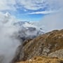 Nachdem wir die bereits geschlossene Cabane de Bounavaux passiert hatten, wählten wir bei Pt. 1759 den Aufstieg zum Col Bounavaletta. Herrliche Blicke zurück und hinunter zur Porcheresse des Goilles offenbarten sich uns vom Pass aus. Auch erste Populationen von Steinböcken konnten wir in den steilen Hängen entdecken.