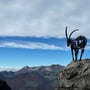 Auf der anderen Seite des Berges erwartete uns eine grosse Herde von Steinböcken. Es waren sicher an die 20 Stück, die sich entlang dem nun breiten Grat aufhielten. Das Naturschutzgebiet ist bekannt für die grossen Populationen von Gämsen und Steinböcken als auch für die vielfältige Pflanzenwelt, die hier beheimatet sind. So viele Steinböcke auf einem Haufen hatte ich noch nie gesehen.