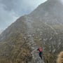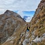 Diese Wildheit durften wir beim anschliessenden Abstieg auf der Südseite erfahren. Der Pfad verläuft dort sehr exponiert durch die direkte, steile Bergflanke. Über eine weite Strecke ist der schmale, abschüssige und äusserst ausgesetzte Weg mit Ketten gesichert. Definitiv ein blauweisser Pfad, der Erfahrung, Schwindelfreiheit und starke Nerven erfordert.