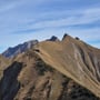 Kurz vor dem Gipfel machte sich dann mitten auf dem Pfad ein Steinbock breit, der uns beim Aufstieg ein wenig gelangweilt beobachtete und um den wir einen Bogen machen mussten. Nach drei Stunden Aufstieg standen wir schliesslich um 13:30 Uhr auf dem höchsten Berg der Freiburger Alpen. Er gehört mit einer Höhe von 2’389 Meter sicherlich nicht zu den grossen der schweizer Gipfel, besticht aber ungemein durch seine wilde Schönheit.
