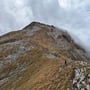 Wir schritten den markierten Wanderweg in Richtung Osten hinauf und konnten schon bald das Gipfelkreuz des höchsten Freiburger Berggipfels erkennen. Doch vor uns ragte eine karstige, beinahe senkrechte 1‘000 Meter hohe Felsflanke in die Höhe, welche uns vom Ziel trennte.