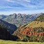 Besonders die Laubbäume in den tieferen Lagen trugen buntes Laub in braun, gelb, rot sowie kürbisorange und verzauberten damit die Landschaft der Voralpen in ein Gemälde.