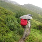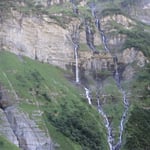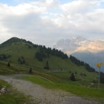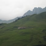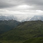 Der Regen war von nun an ein ständiger Begleiter. Selbst eine Stärkungspause liessen wir aus und steuerten direkt unser Ziel an. Die Landschaft war dadurch jedoch nicht minder schön, im Gegenteil. Gerade der anfängliche Abstieg ins Tal war einem Trip im Regenwald sehr ähnlich. Je weiter wir hochstiegen, desto kühler und windiger wurde es jedoch. Leider blieb uns auch das prachtvolle Panorama auf das Mont Blanc Massiv verborgen. Dicke Wolken versperrten die Aussicht.