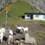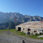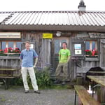 Auf der Alp Charlet du Boret kehrten wir ein. Die Sonne schien schon dermassen stark, dass wir schon wieder komplett verschwitzt waren (evtl. war dies auch dem Alkohol des Vorabends zuzuschreiben).