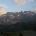 Die Hütte war voll besetzt und es herrschte reger Betrieb als es um 19:30 Uhr Abendessen gab. Dank den milden Temperaturen konnten wir noch lange draussen sitzen, mit der MuHa (Mundharmonika) musizieren und den guten französischen Wein geniessen.