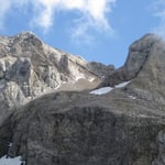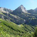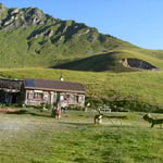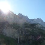 Eine lange erholsame Nacht lag hinter uns. Nach dem Frühstück und Check-out starteten wir. Den Cascade du Rouget, ein riesiger Wasserfall, erreichten wir schon nach drei Kilometern. Nun hiess es Höhenmeter gewinnen. Auf dem GR5 wandernd, erreichten wir in weiteren 1.5 Stunden den Collet d’Anterne 1796m und wenig später das Refuge d’Anterne Alfred Willis auf der traumhaften Alp d’Anterne.