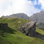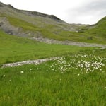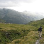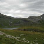 Nach einer kurzen Mittagsrast, ging es in der Regenmontur weiter. Leider wich die Sonne den Wolken und es begann heftig zu stürmen und zu regnen. Doch bereits beim Lac d’Anterne war der Spuk vorbei und der Wind blies uns die Kleidung wieder trocken. Wir genossen die herrliche ursprüngliche Natur und erreichten gegen 14:50 Uhr den Col d’Anterne (2257m), den höchsten Punkt der heutigen Etappe. Von hier aus konnten wir unsere heutige Unterkunft, das Refuge del Moëde Anterne schon sehen.