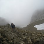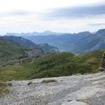 Vorsichtig stiegen wir den steilen Steig hoch. Zickzack, über Schotter und Felsen durch dichten Nebel. Oben bot sich uns eine super Aussicht ins Tal mit den Montagne de Sageroux.