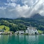 Zwischen zahlreichen Touristen aus aller Welt sassen wir auf dem sonnigen Deck des gut besuchten Kursschiffes. Unsere Reise auf dem Vierwaldstättersee dauerte zweieinhalb Stunden. Dabei steuerten wir die Häfen von Hertenstein, Weggis, Vitznau, Beckenried, Gersau, Treib, Brunnen, Rütli, Bauen und Isleten an.