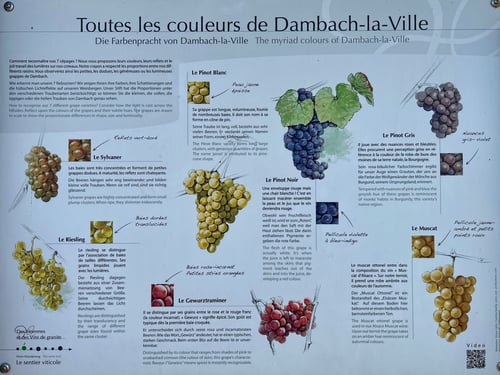 Trotzdem setzte ich mich ein wenig mit den Weinarten auseinander. Schliesslich befanden wir uns zwei Tage in Traubenfeldern. Die Elsässer Weine der "Appellation d’Origine Contrôlée" (A.O.C) tragen im Allgemeinen den Namen der Rebsorte. Im Elsass gibt es 7 Rebsorten: