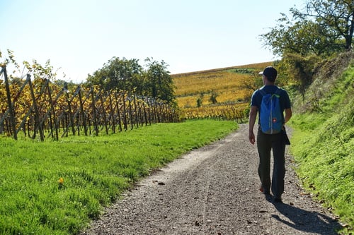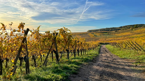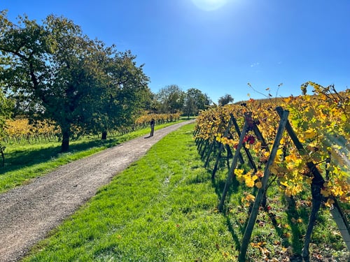 Die erste Ortschaft, welche wir anpeilten, war Dorlisheim. Zu Beginn liefen wir noch durch Siedlungsgebiet, ehe wir schliesslich ausserhalb der Gemeinde an gold-gelb schimmernden Weinfelder entlangwandern durften.