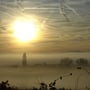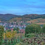 Der Tag bricht gerade an, als wir Andlau in südlicher Richtung verlassen. Die rot-orange Sonnenkugel hat noch Mühe sich durch die Nebelschwaden durchzuringen. Doch ein wunderbarer Herbsttag kündigte sich an.