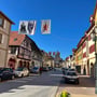 Gestärkt setzten wir unsere Wanderung entlang den mannigfaltigen Weinfeldern fort. Über Bischoffsheim erreichten wir die grössere Ortschaft Obernai. Durch die wunderschöne Innenstadt schlendernd, fanden wir das originelle Restaurant „Zum Schnogaloch“. Die Tische im Hinterhof luden zum Verweilen ein und wir beschlossen, hier unsere Mittagspause einzulegen.
