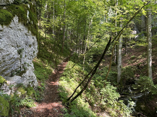 Der Abstieg erfolgte ostwärts über den Grat, bis wir auf den offiziellen Wanderweg trafen und auf diesem durch den Wald des Rinderbergs auf der Südseite abstiegen. Schliesslich trafen wir wieder auf den vom Aufstieg bekannten Wanderweg, welchem wir durch die Wolfsschlucht zurück zum Ausgangspunkt folgten.