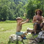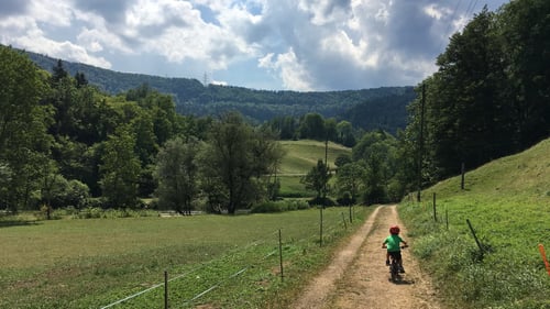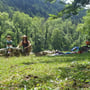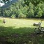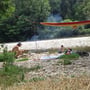 Dann ging es los zu einer Velotour. Doch erst mussten wir mit der "Fähre" auf die andere Flussseite übersetzen. Denn dort gab es einen tollen Biketrail entlang dem Doubs. Lange mussten wir nicht fahren, um einen schönen Ort zu finden. Auch eine Feuerstelle war vorhanden und natürlich eine Bademöglichkeit!