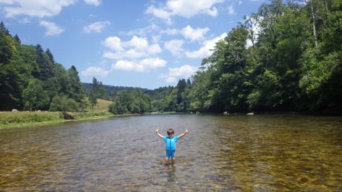 Abenteuer und Camping am Doubs mit Luca. Motto: "Dr Babbe und dr Sohn".