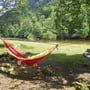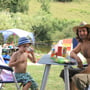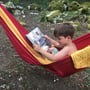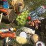 Zwischen den Bäumen spannten wir die Hängematte auf, in der wir uns immer wieder im Schatten ausruhen konnten. Am späteren Nachmittag brätelten wir dann Klöpfer über der Feuerstelle. Als gesunde Sachen gab es Trauben, Käse, Brot, Eis- und Hopfentee.