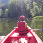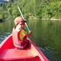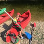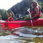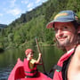 Dann ging es los. Im Transporter befanden sich mit uns fünf Personen und beim Ausgangsort am Doubs warteten nochmals einige. Wir wurden in die Regeln und den Umgang mit den Kajaks und Kanus eingeführt. Luca war dabei vor allem die Farbe wichtig: rot musste es sein. Denn die roten waren die schnelleren Boote.