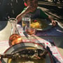Zu Abend assen wir im guten Gartenrestaurant vom Camping Tariche. Es gab natürlich frische Regenbogenforelle. Luca genügten Pommes mit Ketchup und Mayo. Doch wir beide wollten danach auch ein Dessert. Luca ein Zitronenglace und ich – aufgrund eines Tipps - ein Damassine-Parfait. Ich kannte Damassine zuvor gar nicht. Wikipedia erklärte mir, dass dies eine Pflaumenart ist, die nur in höheren Bergregionen Europas und des Vorderen Orients angebaut wird. Aus der Pflaume wird in der Schweiz − vor allem im Jura − der „Eau de Damassine“ gebrannt. Der Geschmack erinnerte sehr stark an Kirsch. Entsprechend schwankend ging ich dann auch mit Luca ins 1. OG des VW-Busses. Oder war dies alles nur vom Schaukeln auf dem Fluss?
