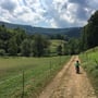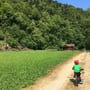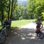 Als alles eingepackt, geputzt, im Auto verstaut und die Campingplatzrechnung bezahlt war, fuhren wir ein paar Kilometer weiter den Fluss hinunter. Hier parkierten wir das Auto und fuhren mit den Fahrrädern dem abenteuerlichen Pfad entlang dem Doubs.