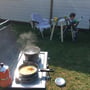 Wiederum erwartete uns ein sommerlicher Prachtstag! Bereits um 09:00 Uhr war es so heiss, dass man es an der Sonne kaum aushalten konnte. Entsprechend genossen wir das Frühstück im Schatten. Heute gab es sogar Eier! Spiegelei für Papa, gekochtes Ei für Luca.