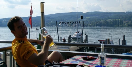 Gegen 15:15 Uhr ging es dann wieder weiter in Richtung Konstanz. Und jetzt folgte für mich der schönste Teil dieser Reise, da ich wusste es geht dem Ende zu - hahaha! Nein, natürlich nicht deshalb! Wir haben nämlich noch einen Umweg zur Insel Reichenau, die im Bodensee liegt genommen, bevor wir weiter über Konstanz nach Kreuzlingen zu unserem Ausgangspunkt geradelt sind! Und da erwartete uns bei strahlendem Sonnenschein ein Traum von Weinbergen, einem Kloster mit Kräutergarten, wunderschöne Aussicht auf See und Festland und das beste kommt zum Schluss - ein Fischerfest!! Und wir mittendrin! Zuerst einmal gönnten wir uns ein Eis bevor wir mit unseren Velos durch die Menschenmenge zum Seeufer am Hafen gegangen sind. Dort haben wir unsere Handtücher ausgebreitet und uns in die Sonne gelegt, der Musik und dem Treiben auf dem Fest gelauscht und uns schliesslich ein Fläschchen Weisswein gegönnt! Zum Wein gehört natürlich auch eine Brotzeit und so gab es noch Radi und Butterbrot dazu. Weil’s so gut war, gönnten wir uns gleich noch eine zweite Runde. Eigentlich wollten wir von da gar nicht mehr aufbrechen, aber wir hatten ja doch noch eine kleine Strecke von etwa 10 km vor uns!