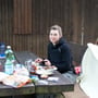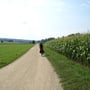 Nachdem wir noch ein wenig die Sonne auf der Terrasse des Restaurants genossen haben, ging es dann weiter zum letzten Teil unserer Tour an diesem Tag und dieser war dann doch nicht ohne! Bis dahin hatte Olli verschwiegen, dass Homburg erhöht über dem See liegt. Als es immer steiler wurde und ich schon total ausser Atem war, feuerte mich Olli an, nicht aufzugeben. Ja toll, dachte ich mir, was habe ich mir da bloss wieder angetan! Nach zwei Verschnaufpausen, die ich dann doch einlegen musste, sind wir schliesslich gegen 19.30 Uhr am Bauernhof in Homburg angekommen. Danach noch schnell eine Dusche und schon brutzelte das Fleisch auf dem Grill. Gemütlich haben wir dann vor unserem Strohschuppen zu Abend gegessen, wobei es ziemlich schnell kalt wurde.