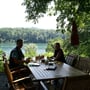 Die erste Etappe war eigentlich super, denn es ging alles bergab - das, was wir am Vortag alles bergauf geradelt sind, durften wir am heutigen Tage wieder runterradeln! Von Homburg ging es nach Steckborn und von dort über Stein am Rhein (ein Stopp ist hier absolut zu empfehlen - wunderschöne kleine Stadt mit viel Flair) und Diessenhofen. Auf der deutschen Seite zwischen Diessenhofen und Schaffhausen haben wir um 13:30 Uhr im Restaurant Waldheim einen Stopp zum Mittagessen eingelegt. Auch dieses Restaurant ist zu empfehlen, da die Deutsch-Schweizer Grenze genau auf der Terrasse des Restaurants verläuft und man einen traumhaften Ausblick über die Weinberge hinunter zum Rhein hat. Und natürlich auch das Essen sehr lecker ist!