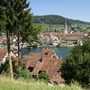 Nachdem wir diese zusammen mit tausend anderen Touristen besucht hatten, machten wir uns gegen 15:45 Uhr wieder auf. Zurück über Schaffhausen, Paradies (dieser Ort heisst ungelogen so - jedoch kann von einem "Paradies" wie wir das Wort verstehen, keine Rede sein!), Diessenhofen, Gailingen und bei Rheinklingen über den Rhein ging es über Stock und Stein, Berg und Tal zum Bolderhof in Hemishofen bei Doris und Heinz Morgenegg.