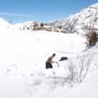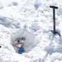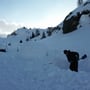 Schon bald hatten wir einen geeigneten Platz gefunden und die Arbeit ging los. Eisblöcke schneiden, Igluboden ausheben und festpressen und die stille wunderbare Berglandschaft geniessen.
