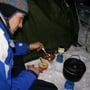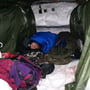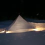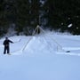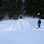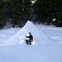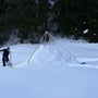 Schlitten laden, Rucksack und Schneeschuhe an, Ziehgurt für den Schlitten montieren - los ging’s. Nach einer zweistündigen Tour hatten wir einen idealen Bauplatz gefunden. Nun musste gearbeitet werden, denn die Sonne machte ein Wettrennen mit uns. Um 17:00 Uhr sollte es bereits dunkel sein. Wieso mussten wir diese Unternehmung eigentlich am kürzesten Tag des Jahres durchführen?