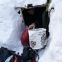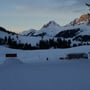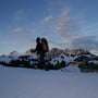 Die Nacht im PYLOO war angenehm. Ich hatte zwar nicht so eine gute Bodenisolation wie mein PYLOO-Mitbauer Dominik, doch es war OK. Die Temperatur hielt sich bei drei Grad Celsius, wodurch es im Schlafsack schön angenehm war. Das Aufstehen war hingegen schon einiges unfreundlicher. Kalte Kleider und die noch kälteren steifen Schuhe liessen nicht gerade eine gemütliche Morgenstimmung aufkommen. Da musste ein Frühstück mit heissem Tee und Bewegung her. Zehnmal ums PYLOO, Teekochen und für die geplante Schneeschuhtour packen. Wir wollten nämlich die wunderschöne Gegend rund um den Janupass ein wenig genauer erkunden. Die Sonne brach gerade über die Gipfel als wir losliefen.