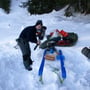 Unsere grösste Sorge war die Schneekonsistenz und Menge. Für den Bau benötigten wir Unmengen an Kubiklitern und wir wussten nicht, ob wir am Bauort direkt soviel zur Verfügung hatten. Ein weiteres Problem war der Transport des Gerüsts und des weiteren Materials. Es musste also ein umgängliches Transportmittel her.