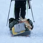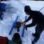 Es stellte sich schnell heraus, dass wohl ein Schlitten das beste Gefährt wäre. Doch diese waren teuer und erst noch klein und daher für den Schneetransport ungeeignet. Wir entschlossen uns für eine Eigenkonstruktion. Aus zwei Plastikkisten und ausgedienten Skiern war schnell ein PYLOO-tauglicher Geländewagen gebaut. Wir waren gespannt auf dessen Einsatz.