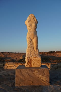 Die Panasía Drosiani, die »Taufrische Allerheilige«, ist, trotz ihres Namens, die älteste Kirche der Insel. Der Altarraum mit den drei Apsiden aus dem 4. Th. n. Chr. ist der älteste Teil. Im 7. Th. wurden daneben drei höhlenartige Beträume errichtet und im 12. Th. dann alles durch den grossen rechteckigen Hauptraum miteinander verbunden. Berühmt sind die Fresken, deren älteste Schichten in der Hauptkuppel bis zu 1’400 Jahre alt und damit die ältesten des Balkans sind.