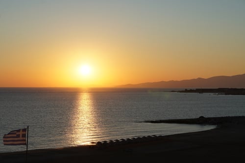 Das Marmortor ist inzwischen 2'500 Jahre alt und wird von jedem Naxos-Touristen besucht. Entsprechend war der Andrang auf der Halbinsel bei Sonnenuntergang gross. Alle wollten die „Portára“ im orangenen Hintergrund sehen und fotografieren.