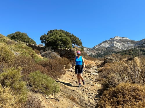 Die Bergtour würde uns heute auf den Zas – den sogenannten Zeusberg –, mit seinen 1'000 Metern der höchsten Gipfel der Kykladen, bringen. Wir wählten die Rundtour so, dass wir eine Überschreitung von Westen nach Osten begehen und damit den Aufstieg der 650 Höhenmeter grösstenteils im Schatten bewältigen konnten.
