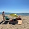 Von der gedeckten und windgeschützten Terrasse unseres Hauses hatten wir eine Traumaussicht auf den Strand und den täglichen Sonnenuntergang über dem Meer. Andere Leute konnten wir uns mit den Fingern an zwei Händen abzählen. Die Saison war hier vorbei. Wir sind an einem paradiesischen Badeort angekommen.
