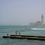 Nach einer halben Stunde erreichten wir den Strand, welchem wir fortan in östlicher Richtung folgten. Das erste Ziel war der markante Leuchtturm El Hank. Vom Leuchtturmplatz konnten wir das Wahrzeichen von Casablanca bereits sehen: Die mächtige Hassan-II.-Moschee, eine der grössten Moscheen der Welt.