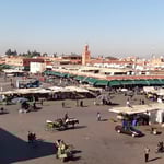 Am Mittag fanden wir in der Nähe des Djemaa el Fna ein einfaches Restaurant mit Terrasse, wovon wir über den ganzen Platz sahen und das Treiben auf dem Platz beobachten konnten. Lange blieben wir da sitzen, tranken Pfefferminztee aus der Kanne und ruhten uns vom vielen Laufen aus. Unglaublich und nicht nachvollziehbar kam uns der Terroranschlag im unweit entfernten Touristenkaffee Argana vor, bei dem im April dieses Jahres 17 Menschen bei einem Sprengstoffanschlag ums Leben kamen. Sie passte überhaupt nicht in die sonst hier friedlich lebende Gesellschaft.