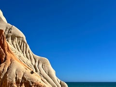 Die Westküste der Algarve ist sehr gegensätzlich dem südlichen Abschnitt, welcher eher mediterran geprägt ist. Hier im Westen sind weniger Touristen unterwegs. Es bläst ein stetiger Wind und die Landschaft kommt viel rauer und wilder daher. Hier finden Wellensurfer ihr Paradies. Die Konstellation für die Entstehung hoher Wellen ist hier sehr gut und es finden regelmässig Weltmeisterschaften im Surfen statt.