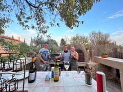 Zum Glück hatten wir während des ganzen Aufenthalts sonniges Wetter und warme Temperaturen (25 Grad Celsius). Somit konnten wir die meiste Zeit draussen im Garten verbringen. Dort wuchsen Kiwi-, Feigen-, Orangen-, Limetten- und Pflaumenbäume. Auch an den zahlreichen Weintrauben konnten wir uns verpflegen. Man fühlte sich wie im Paradies. Ab und zu musste man halt ein Auge zudrücken, um herumliegenden Abfall und sanierungsbedürftige Gegenstände auszublenden.