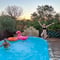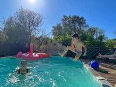 Es gab auch eine kleine Wiese, wo wir Fussball spielen konnten, einen antiken Töggelikasten und den kleinen Pool, in dem wir herumplanschten. Der Platz, wo wir jedoch am meisten die Zeit verbrachten, war die grosse Grillstelle mit rundem Steintisch unter einer Pergola. Hier wurde gebrätelt, getrunken, gelacht und getanzt bis es dunkel wurde.