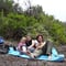 Allmählich gelangten wir auf einen Bergkamm und wir konnten nach dem dichten Wald wieder den Himmel über uns sehen. Wenig später schritten wir durch Büsche und schon bald konnten wir das Meer und die umliegende Landschaft erkennen. Es war Zeit für eine Pause. Dank unserer grossen mitgenommenen Decke konnten wir es uns bequem machen. Doch mit Emilia und den umherschwirrenden Mücken war es nicht einfach, einen Mittagsschlaf zu machen. Wir gingen also nach kurzer Rast weiter.