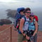 Hier oben „chutete“ es nur so und der Wind blies uns Nieselregen um die Ohren. Von der toll beschriebenen Aussicht in alle Himmelsrichtungen war nichts zu sehen. Die Sichtweite betrug gerade mal 10 Meter. Wir machten ein obligates Gipfelfoto und schützten Emilias Trage und Tanjas Rucksack mit der Regenhülle. Dann ging es über die Nordwestflanke des Pico Ruivos wieder runter.