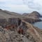 Das Wetter war bewölkt und es ging ein starker Wind. Wir hüllten unsere Ohren in die Stirnbänder ein und schützten die Augen mit den Sonnenbrillen ehe wir losliefen. In der Zwischenzeit fuhren einige Busse von Wanderagenturen ein, und der schon fast penibel ausgebaute Wanderweg füllte sich mit Raupenschlangen aus Menschen.