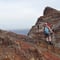 Da wir uns in einem Naturschutzgebiet befanden, war der ausgebaute Weg natürlich in Ordnung. Denn so konnten auch die Sonntagswanderer die tollen Aussichten auf die farbenfrohen, schroffen Felsen und Felsvorsprünge bewundern. Gegen Ende der Wanderung war es dann auch Schluss mit dem "Spaziergang", denn hier ging es nochmals steil hinauf zum 150 Meter hohen Gipfel Morro do Furado, welcher gegen Ende gut gesichert über eine Krete erreichbar war.