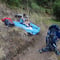 Gerade als ich mit dem Selbstauslöser ein Foto machen wollte und dazu einen kleinen Vorsprung heruntersprang passierte es. Plötzlich fühlte ich Wasser, welches langsam über den Rücken in die Unterhose und dann in den Hosenbeinen herunterlief. Schnell zog ich den Rucksack aus und sah zugleich, dass der Verschluss des Wassersacks sich komplett geöffnet hatte und nun drei Liter Wasser im Rucksack umherschaukelten. Darin meine Ersatzwäsche, die Regenjacke, Essen, erste Hilfe Tasche etc.